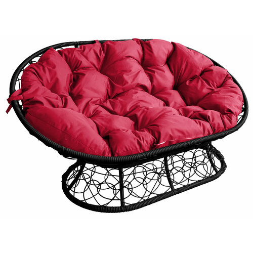 Диван "Мамасан" с ротангом чёрное / красная подушка M-Group