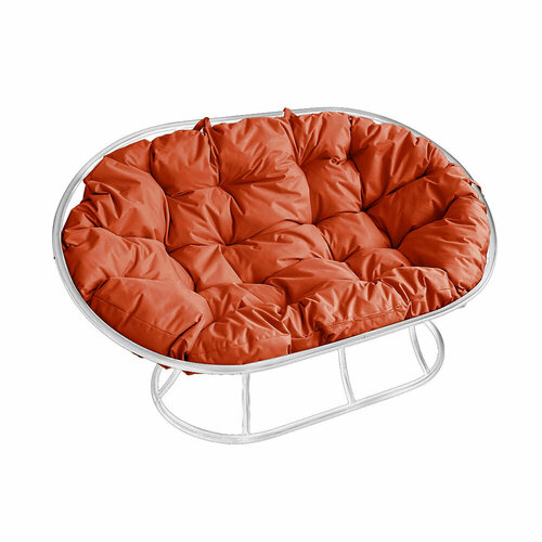 Садовый диван "Мамасан" без ротанга белое с оранжевой подушкой M-Group
