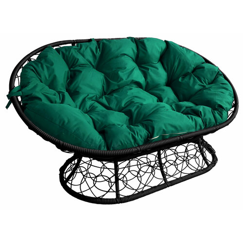 Диван "Мамасан" с ротангом чёрное / зелёная подушка M-Group