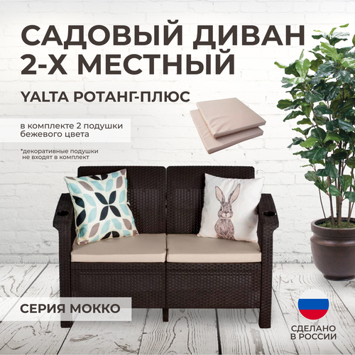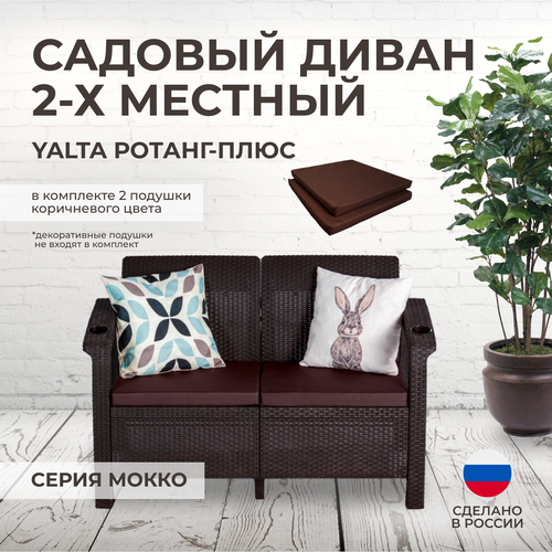 Диван двухместный YALTA (Ротанг-Плюс) Коричневые подушки