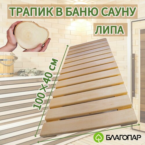 Трапик Решётка на пол для бани, сауны, ванной 100х40см из Липы, сорт экстра благопар
