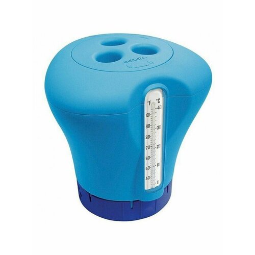 Тип: Плавающий . Форма: Круг . Установка: На водной поверхности . Вес таблетки: 200 гр. Количество таблеток: 5 шт. Диаметр таблетки: 75 мм. Емкость: 1 кг. Цвет: Синий . Материал корпуса: Пластик . Тип термометра: спиртовой Шкала по Цельсию: 0-40°C Шкала по Фаренгейту: 32-104°F Описание: Большой плавающий дозатор с термометром от производителя Kokido идеально подходит для всех садовых бассейнов. Предназначен для простой дозировки таблеток хлора и брома. Основной особенностью данной модели является встроенный термометр, который делает дозатор удобным и практичным. Он изготовлен из стойкого к ультрафиолетовому излучению пластика. Устройство дозирования позволяет добавлять в воду столько веществ, сколько требуется. Купив термодозатор Kokido, вы останетесь довольны простым и практичным использованием. Особенности: • Яркий синий цвет • Вмещает в себя пять таблеток диаметром 75 мм • Самостоятельная регулировка подачи реагента • Встроенный термометр