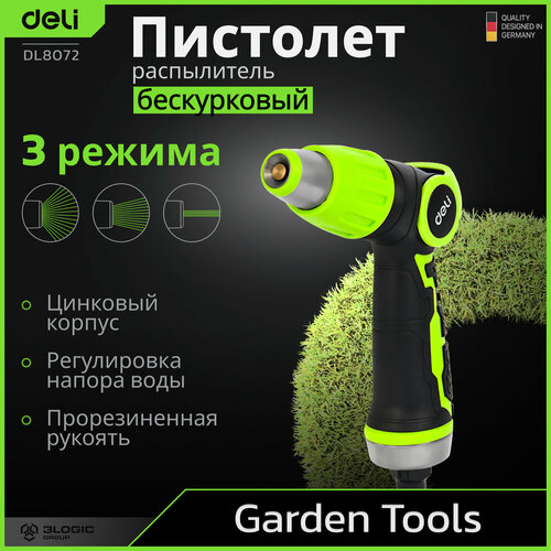Пистолет-распылитель поливочный бескурковый Deli DL8072 (3 режима распыления, корпус из цинкового сплава, прорезиненная рукоять)