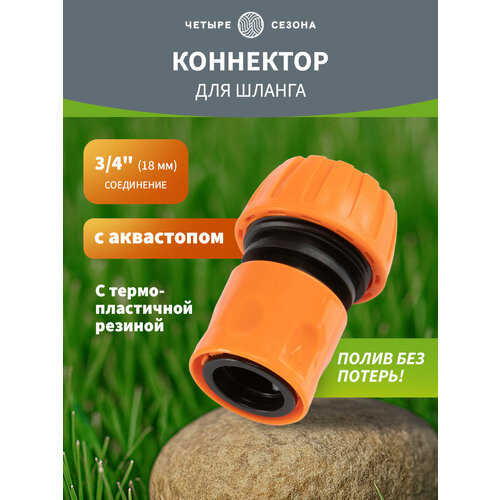 Коннектор для шланга, быстросъемный 3/4" с аквастопом четыре сезона