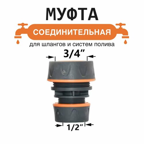 Муфта 3/4 х 1/2 соединительная ремонтная обрезиненная для шлангов