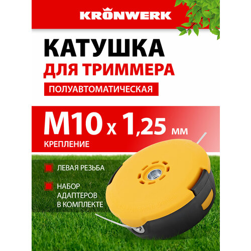 Катушка для триммера гайка Kronwerk М10, лев, М8 лев и прав, адаптер М8 левая, шаг 1,25 мм 96354