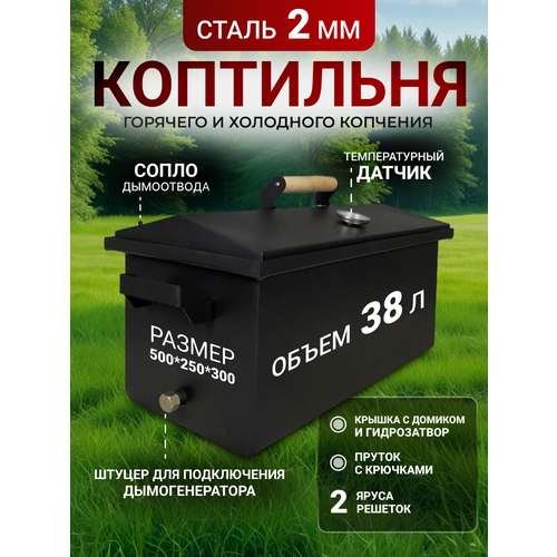 Коптильня горячего и холодного копчения с гидрозатвором с датчиком температуры 2 мм (500*250*300)