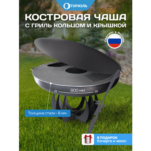 Костровая чаша из стали 6 мм. диаметр 800 мм. с гриль кольцом, крышкой + кочерга и чехол в подарок