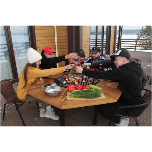 Стол гриль для дачи, деревянный стол с мангалом, гриль, очаг. Использование круглый год.