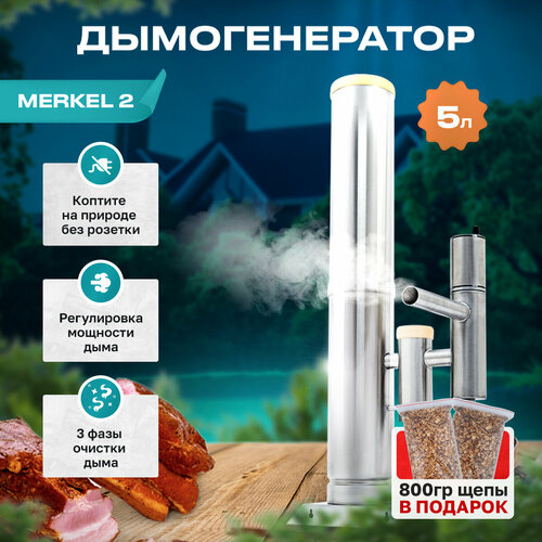 серебристыйНепрерывная работа до 14 часов на одной закладке Автономное питание Коптите на природе без розетки Тонкая настройка Ручная регулировка потоков дыма Эко-дым3 фазы очистки MERKEL 2 — новое поколение дымогенераторов Уникальная система подачи дыма Благодаря повышенной тяге щепа загорается сразу, а КПД самого генератора с лёгкостью достигает 80%. Тройная очистка дыма Эко-дым — показатель качества вашего генератора. Три фазы фильтрации дыма (бункер → лабиринтный сухопарник → вихревой сухопарник) избавят деликатесы от смол, горечи и канцерогенов. Автономное питание Дымогенератор не «привязан» к розетке и работает от любого зарядного устройства c USB разъёмом 2.0 +