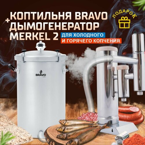 Коптильня Bravo 2 для горячего и холодного копчения в квартире и на даче + дымогенератор Merkel 2