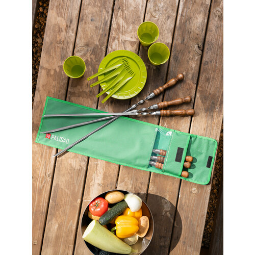 Набор шампуров угловых Palisad, 650 мм, с деревянной рукояткой, в чехле, 6 шт, Camping, 69752