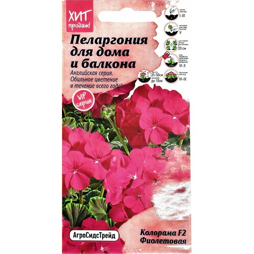Пеларгония Колорама F2 Фиолетовая для дома и балкона 5 шт АСТ / семена цветов многолетних для сада в грунт / многолетников / многолетние цветы