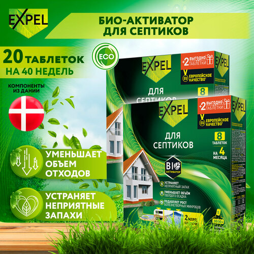 Биоактиватор для септиков и выгребных ям, Бактерии, средство для дачного туалета Expel, 10 таблеток, 2 уп