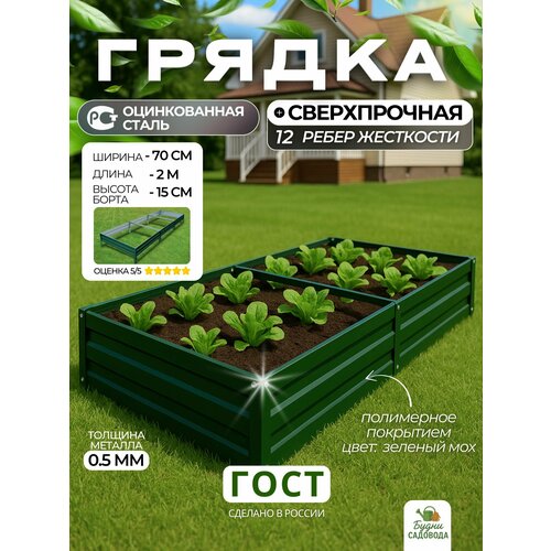 Грядка оцинкованная с полимерным покрытием 0,7х2,0 м, высота 15 см, Цвет: Зеленый мох