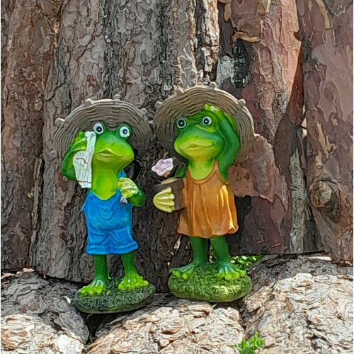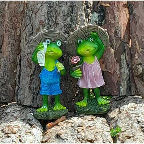 Набор садовых фигурок "Парочка Лягушек", полирезин, цвет голубой/оранжевый