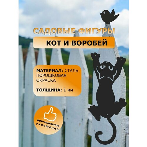 Садовые фигурки для дачи и огорода "Кот и Воробей", 2шт: сталь