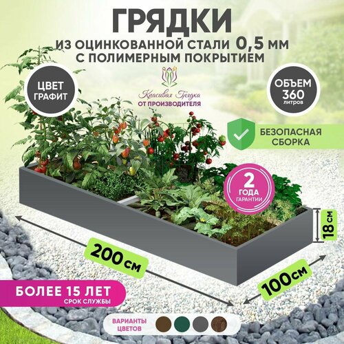 Грядка оцинкованная "Красивая грядка", с полимерным покрытием для сада и дачи , 1 х 2 м. ( цвет графит )