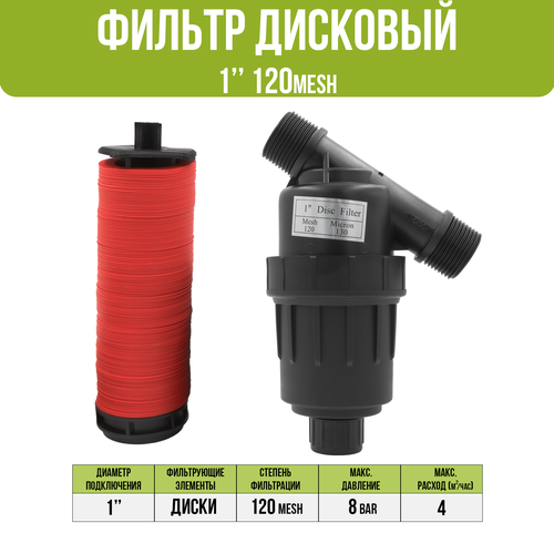 Фильтр 1" дисковый, 120 mesh для капельного полива (4 куб. м/час)