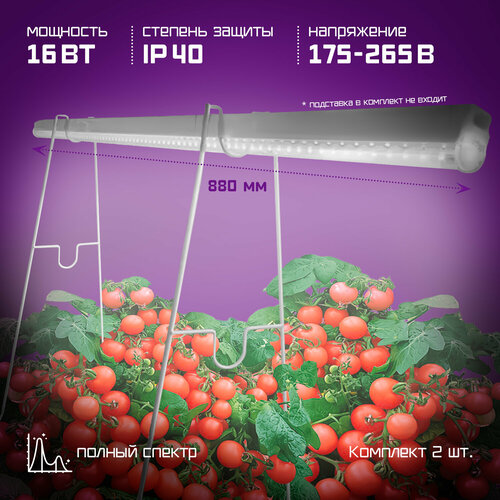 Лампа для растений, фитосветильник для рассады линейный, светильник для комнатных цветов LED 16 Вт 900мм