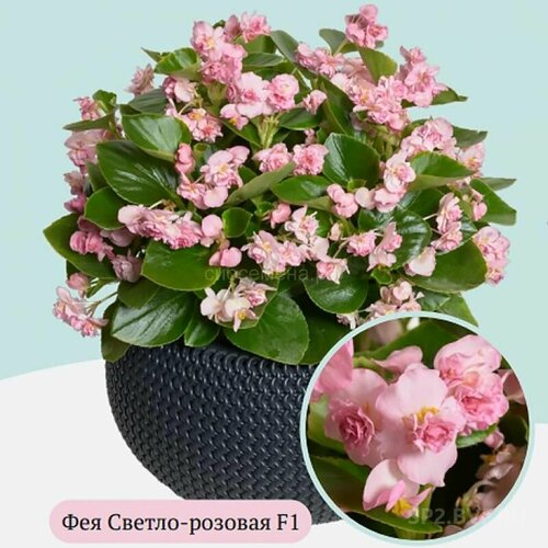 Бегония вечноцветущая F1 Фея Светло-Розовая, группа компактных густомахровых бегоний, обладают эффектом самоочищения что облегчает уход, 10 семян