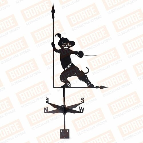 Флюгер BORGE Кот в сапогах, 475х715мм, чёрный ( RAL 9005)