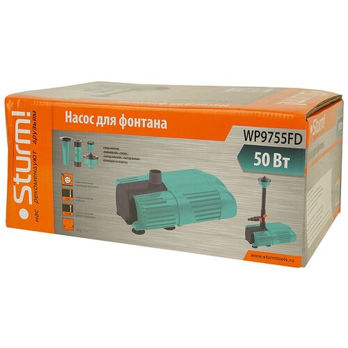Sturm! Насосы WP97120FC Насос фонтанный 120Вт, 50л м, напор 3м, глуб погруж 3м,10м. каб,3 насадки WP97120FC
