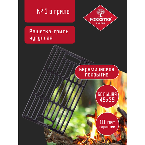 Решетка для гриля на мангал, барбекю Чугунная FORESTER с керамическим антипригарным покрытием 35х45 см