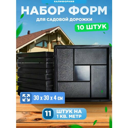 Формы для тротуарной плитки "Квадрат Калифорния" (30x30x4), набор из 10 штук