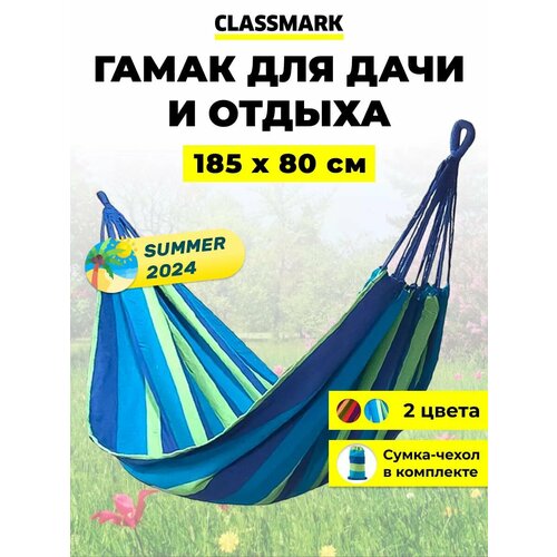 Цены на Гамак для дачи Classmark, 185х80, подвесной, уличный, туристический, домашний для похода, туризма, отдыха и кемпинга, для взрослых и детей зеленый, голубой в г. Пермь