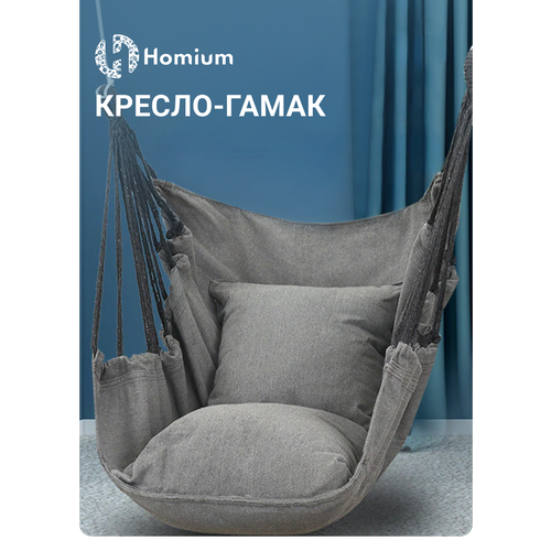 Садовые кресла качели подвесные, подвесной диван качели, кресло качели гамак с 2 подушками, серые, Homium, 90*60 см