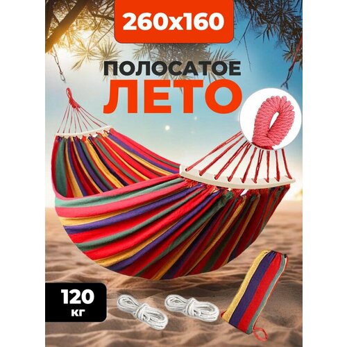 Гамак с доп. креплением (стропы с петлями), из полиэстера, 260х140 см