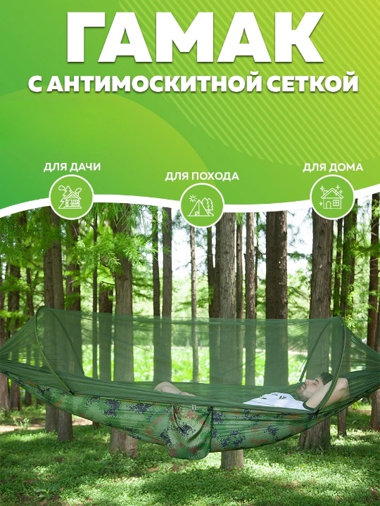 Гамак с москитной сеткой (Зеленый) подвесной для дачи сада похода отдых на природе для дома охоты рыбалки за грибами зеленый