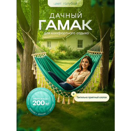 Гамак для дачи с планкой подвесной 100x200 см, максимальная нагрузка - 120 кг, поликоттон/дерево, - для отдыха на приусадебном участке.