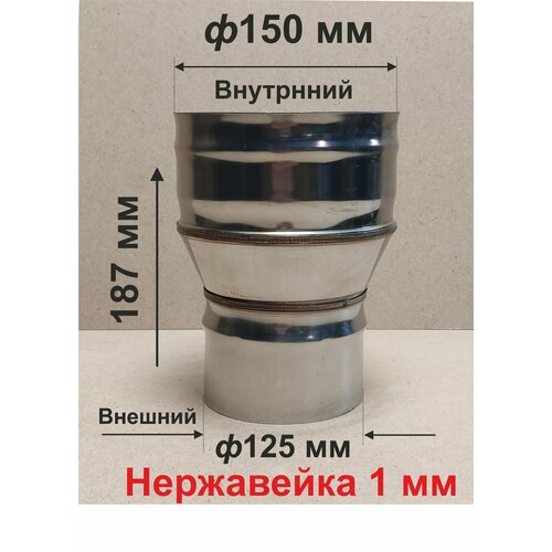 Переходник ф 125/150 мм П/М для дымохода нержавейка 1 мм