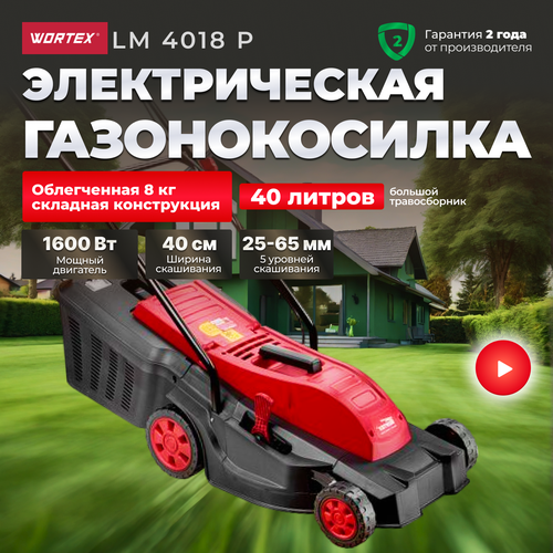 Электрическая газонокосилка Wortex Газонокосилка электрическая WORTEX LM 4018 P (LM4018P0019), 1600 Вт, 40 см