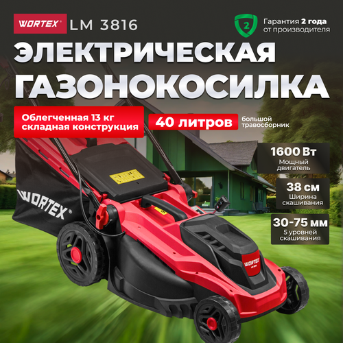 Электрическая газонокосилка Wortex Газонокосилка электрическая WORTEX LM 4018 P (LM4018P0019), 1600 Вт, 40 см, красный/черный