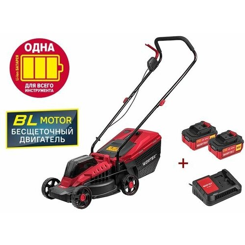 Газонокосилка аккумуляторная WORTEX CLM 3836 ALL1 ширина обработки 37 см, травосборник 35 л. черный, красный