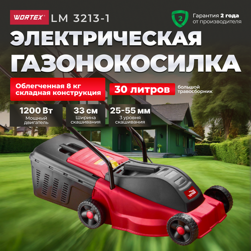 Электрическая газонокосилка Wortex Газонокосилка электрическая WORTEX LM 3213-1 P (LM32131P0019), 1200 Вт, 32 см
