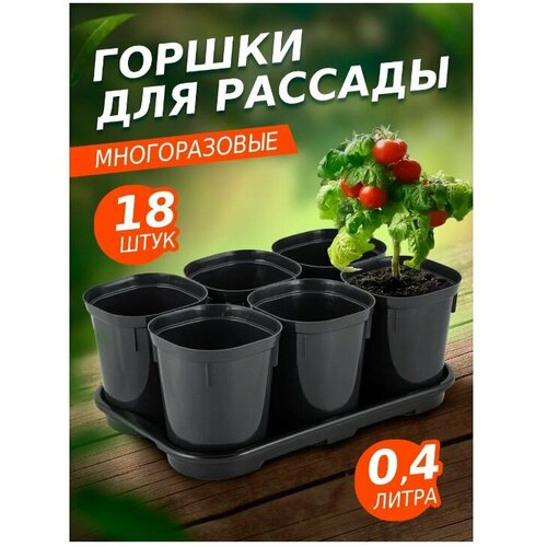 Горшки для выращивания рассады с поддоном 400мл 18шт, оникс