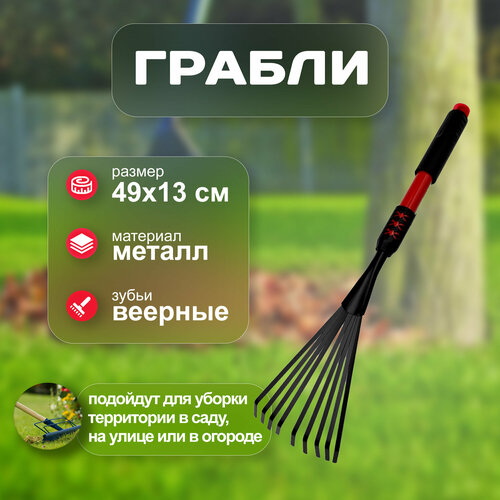 Веерные грабли садовые, 49x13 см, сталь, для использования на приусадебных участках, огородах или дачах для возделывания почвы и удаления сорняков
