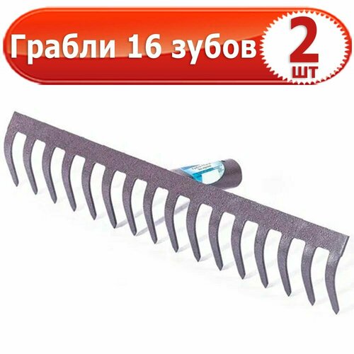 2 шт Грабли с плоскими зубьями ГПШ-16, 16 зубьев, без черенка, Инструм Агро