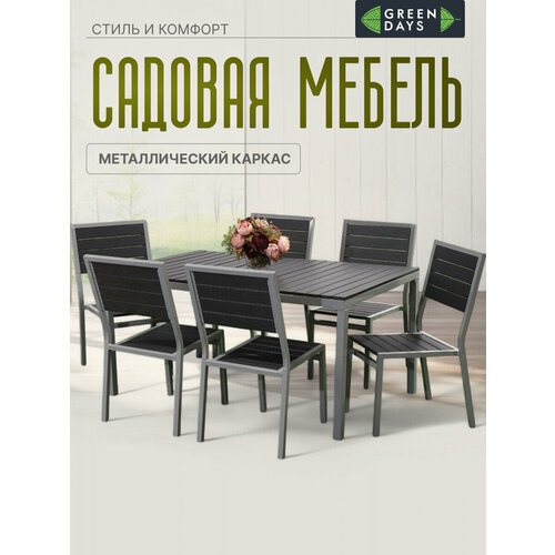 Мебель садовая Green Days, Эвелина, черная, стол, 150х90х72 см, 6 стульев, 120 кг, YTCT012