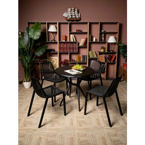 Комплект садовой мебели Royal Family: черный стол TOM + 4 черных стула NICO