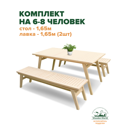 Комплект садовой мебели из массива дерева (стол 1,65м, 2 лавки) на 6-8 человек