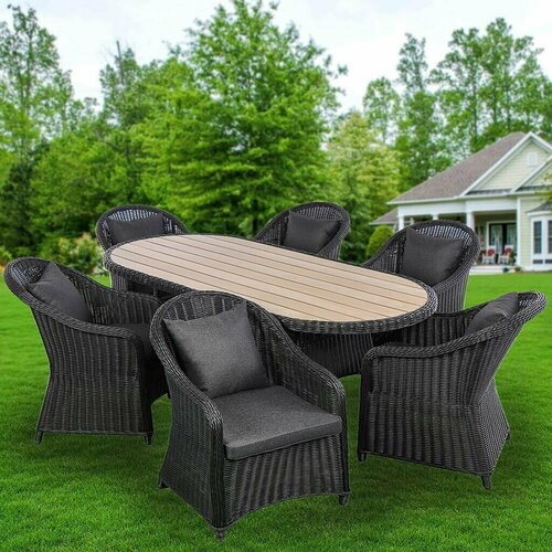 Мебель садовая Green Days, стол, 210х100х75 см, 6 кресел, подушка черная, CYH1830W-2-drk