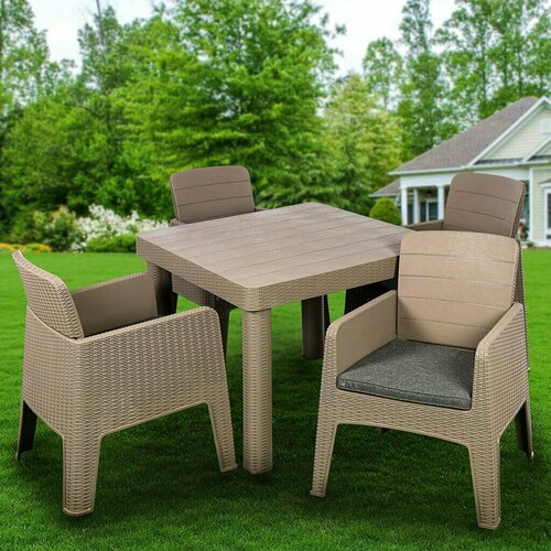 Мебель садовая Green Days, кофе с молоком, стол, 90х90х76 см, 4 кресла, подушка, 150 кг