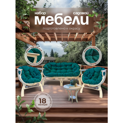Комплект садовой мебели из массива дерева (столик кофейный, 2 стула со спинкой) на 2 человека