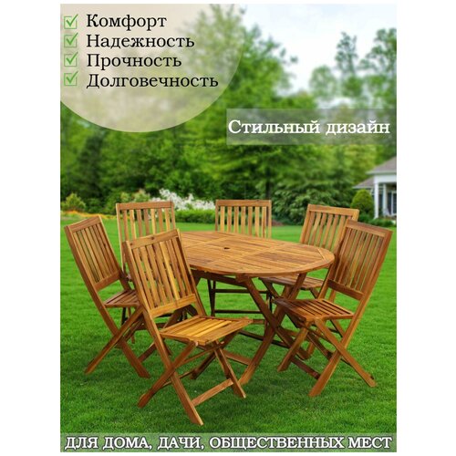 Мебель садовая Green Days, Просто и удобно, дерево, стол, 150х90х74 см, 6 стульев