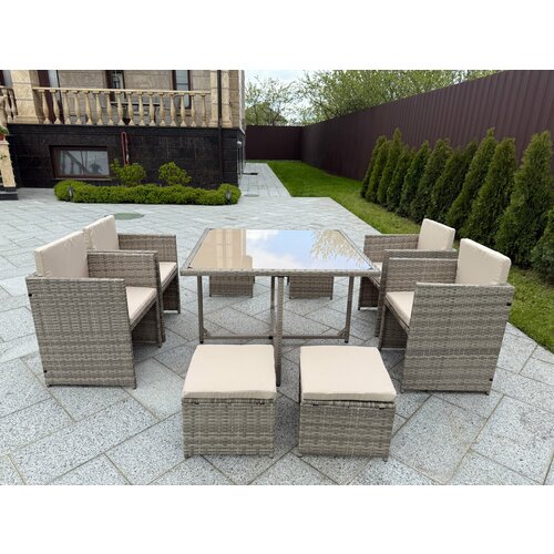 Комплект садовой мебели трансформер Full Comfort - COMO (квадратный стол, 4 кресла, 4 пуфа). Складывается в куб. Бежевый